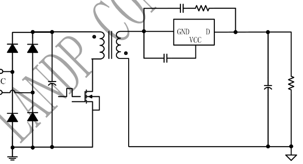VCC供電:芯片內部集成了VCC供電技術,能夠在不需要輔助繞組供電的情況下,保證VCC電壓穩定.當系統上電后,通過內置MOS的體二極管對輸出電容充電,當VCC電壓達到開啟閾值時,芯片內部控制電路開始工作。
