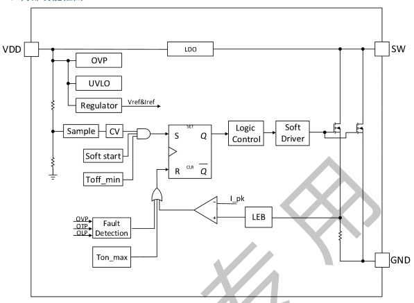 功率MOS漏極電壓:650V,這是芯片能夠承受的最大漏極電壓,適用于高電壓輸入場景。