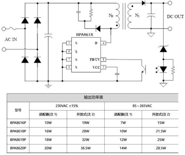 在輸出規(guī)格上,BPA861X 提供了 12V、1A(12W)的穩(wěn)定輸出,負(fù)載調(diào)整率和線調(diào)整率均小于 1%,輸出電壓紋波 VPP 小于 100mV,這些參數(shù)指標(biāo)確保了電源輸出的高質(zhì)量和穩(wěn)定性,能夠?yàn)榧译娫O(shè)備的各個(gè)部件提供可靠的電力支持。同時(shí),BPA861X 的封裝形式為 DIP-7,這種封裝具有良好的散熱性能和易于安裝的特點(diǎn),能夠滿足大家電電源對散熱和空間布局的要求。