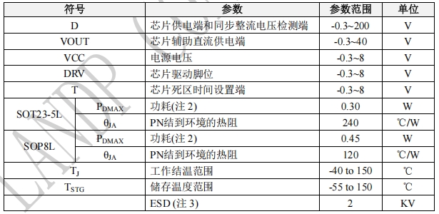 在電氣參數(shù)方面,LP35116-7 表現(xiàn)卓越。其 VCC 工作電壓范圍為 5.8V 至 6.4V,啟動電壓為 4.3V 至 4.7V,欠壓保護(hù)閾值為 3.8V 至 4.2V。整流管的開通電壓閾值為 -0.25V 至 -0.15V,關(guān)斷閾值為 -8mV 至 -2mV。驅(qū)動能力方面,其驅(qū)動電壓最大值為 6V,驅(qū)動腳出電流典型值為 1.5A,入電流典型值為 4A,上升時間為 25ns,下降時間為 10ns。這些參數(shù)確保了芯片在高效率和快速響應(yīng)之間的良好平衡。