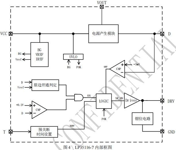 該芯片采用了多項(xiàng)專利技術(shù),包括整流管開通技術(shù)、周期追蹤技術(shù)和死區(qū)時間外置可編程技術(shù)。通過這些技術(shù),LP35116-7 能夠有效避免因激磁振蕩引起的誤動作,減少關(guān)斷延遲,從而顯著提高電源轉(zhuǎn)換效率。此外,其多樣化的 VCC 供電技術(shù)確保了在多種輸出電壓條件下,芯片的穩(wěn)定供電,進(jìn)一步提升了系統(tǒng)的可靠性和適應(yīng)性。