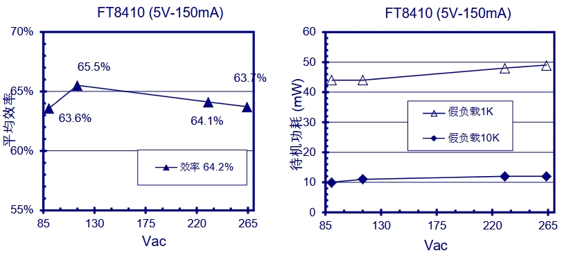 FT84xx系列芯片在效率方面表現出色。以FT8410為例,在不同輸入電壓下,其效率均能達到60%以上,最高可達70%。這種高效率意味著在將交流電轉換為直流電的過程中,能量損失極小,能夠有效減少能源浪費,降低設備的運行成本。同時,該芯片的功耗極低,僅為10 - 50mW,這一特性使其在待機狀態下幾乎不消耗能量,極大地延長了設備的使用壽命。