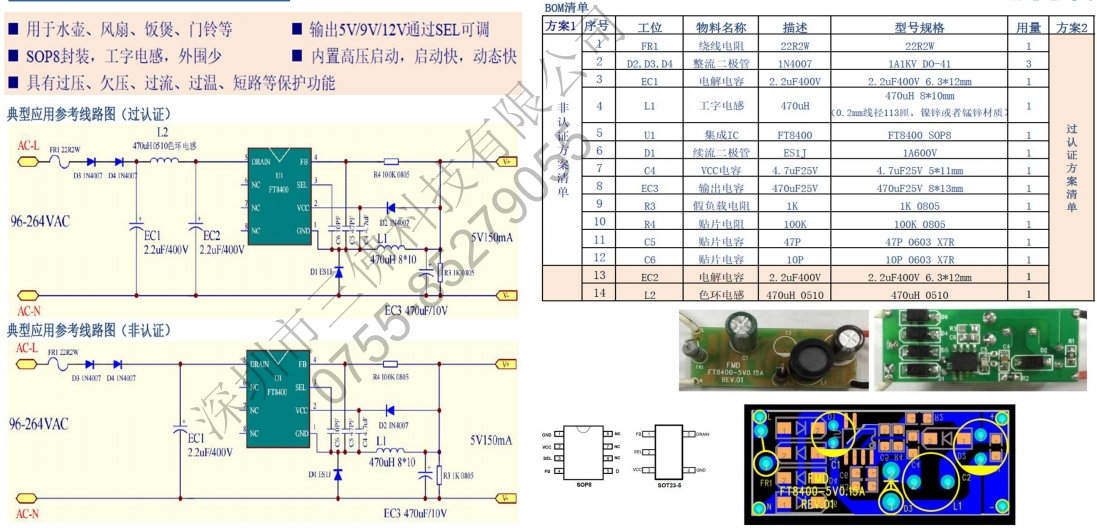 輸出5V/9V/12V通過SEL可調,SOP8封裝,工字電感,外圍少內置高壓啟動,啟動快,動態(tài)快具有過壓、欠壓、過流、過溫、短路等保護功能。用于水壺、風扇、飯煲、門鈴等。