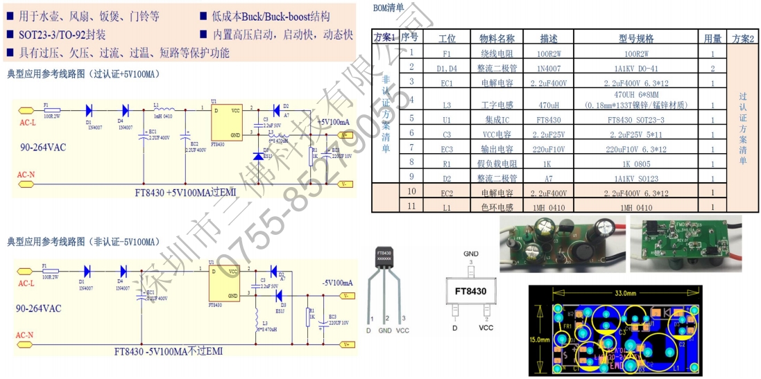 SOT23-3/TO-92封裝,低成本Buck/Buck-boost結構,內置高壓啟動,啟動快,動態(tài)快具有過壓、欠壓、過流、過溫、短路等保護功能。用于水壺、風扇、飯煲、門鈴等。