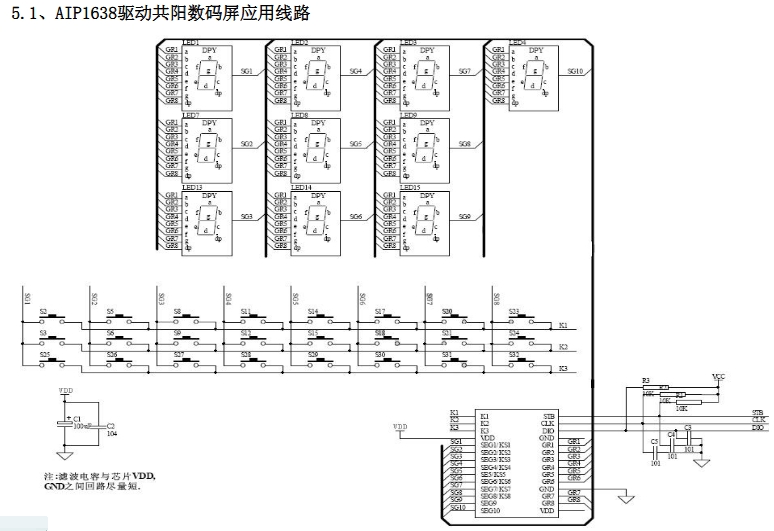 • SEG和GR引腳:這些引腳用于連接LED顯示屏的段和位。根據顯示屏的連接方式,將SEG引腳連接到LED的陽極,GR引腳連接到LED的陰極。