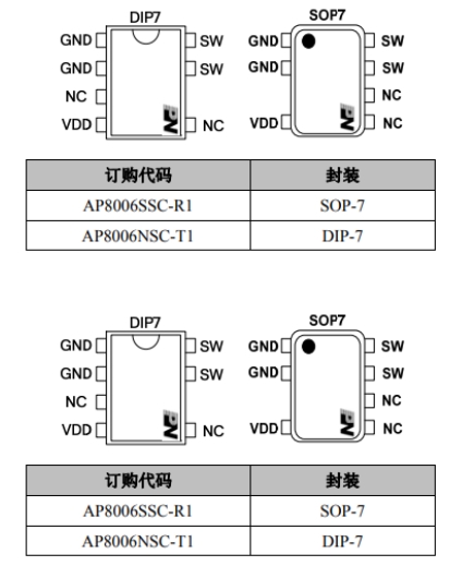 AP8006采用SOP-7封裝形式,這種封裝方式具有體積小、散熱性能好等優點,適合在緊湊的電路板上使用。在訂購時,用戶可以根據實際需求選擇不同的封裝形式和規格型號。例如,AP8006SSC-R1是其中一種型號,適用于小家電電源芯片IC。