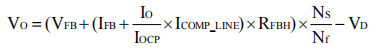 其中,NP和NS分別為變壓器的初級(jí)和次級(jí)匝數(shù),RFBH1和RFBH2為FB外接的上偏電阻,VFB為基準(zhǔn)電壓(通常為1.2V)。