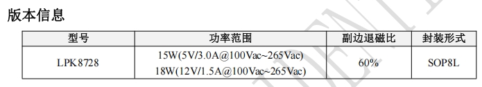 在保護功能方面,LPK8728提供了全面的保障,包括VCC鉗位/欠壓保護、FB腳電阻開短路保護、輸出短路保護、輸出過壓保護以及過溫保護等。這些保護功能確保了芯片在各種異常工作條件下的穩(wěn)定性和可靠性。LPK8728采用SOP8L封裝,具有良好的散熱性能和易于集成的特點。