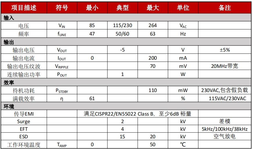低待機功耗:小于50mW@230Vac,符合現代電源對能效的要求。