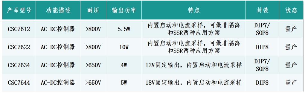 內(nèi)置800V功率MOSFET:CSC7622內(nèi)部集成了一個800V的功率MOSFET,這有助于減少外部元件的需求,同時提高電源效率。