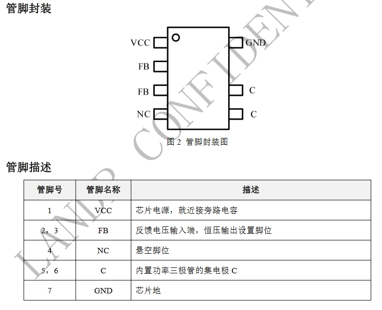 C (Pin 5 & 6): 內置功率三極管的集電極,用于連接變壓器初級繞組。