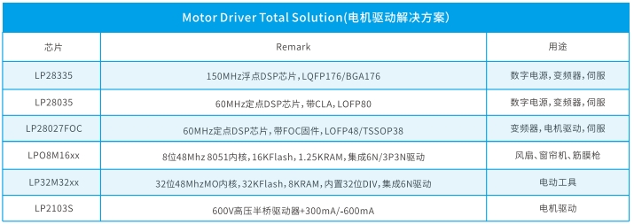 LP28027FOC是一款60MHz的定點(diǎn)DSP芯片,特別之處在于它內(nèi)置了FOC(磁場(chǎng)定向控制)固件,封裝形式為L(zhǎng)OFP48或TSSOP38。這款芯片專為變頻器、電機(jī)驅(qū)動(dòng)和伺服系統(tǒng)設(shè)計(jì),能夠提供精確的電機(jī)控制和優(yōu)化的能效。