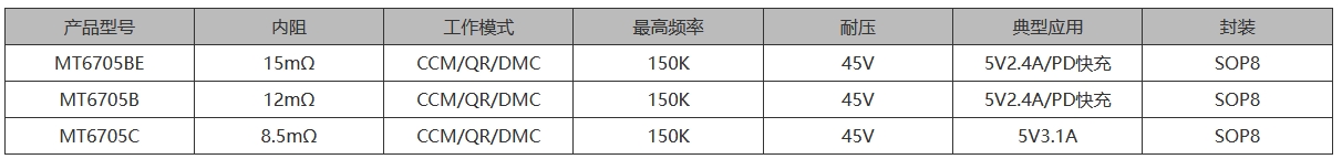 MT6705B 由于其廣泛的工作模式支持,適用于多種電源適配器和充電器設計,特別是在需要高效率和高兼容性的應用中。