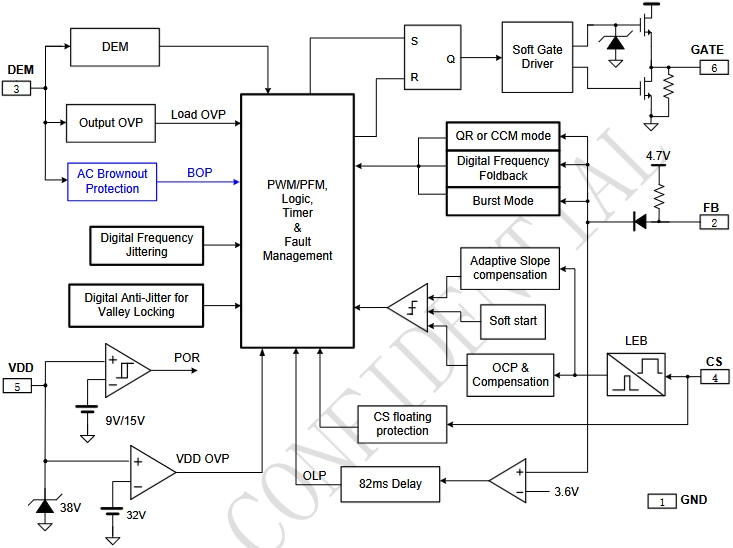 在現(xiàn)代電源管理領(lǐng)域,對(duì)于高效、可靠的PWM控制器的需求日益增長。LP8773H,由Chip Hope Micro-electronics LTD開發(fā),正是一款滿足這些需求的高性能第二代準(zhǔn)諧振PWM隔離反激控制器。本文將詳細(xì)介紹LP8773H的供電電壓、內(nèi)部框架圖以及典型應(yīng)用,展現(xiàn)其在電源管理領(lǐng)域的卓越性能。